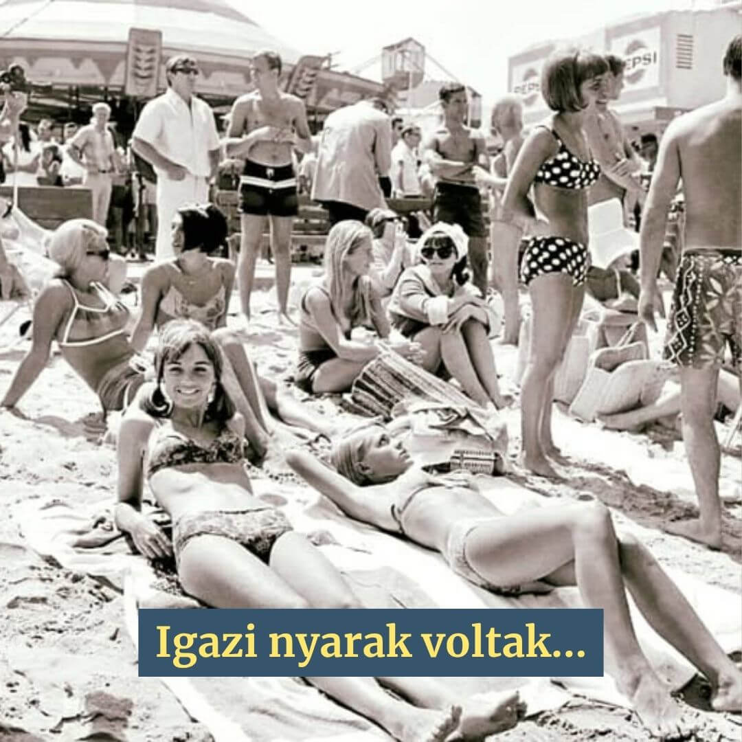 Rikító színek (csak fekete-fehér fotón), magasan felvágott bikini, fonott kosár - ez volt a nyári divat a szocializmusban! Nosztalgiázzunk a 80-as évek Balaton-parti életérzésével.