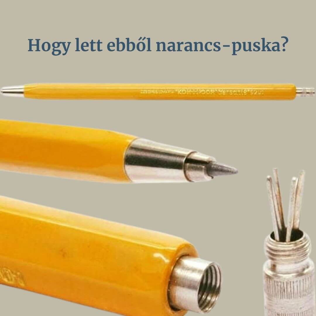A sárga Koh-I-Noor Versatil 5201 töltőceruza nemcsak rajzolásra volt jó! A szétszedhető fém alkatrészeiből igazi narancspuskát barkácsolhattunk! Emlékszel még erre a zseniális trükkre?